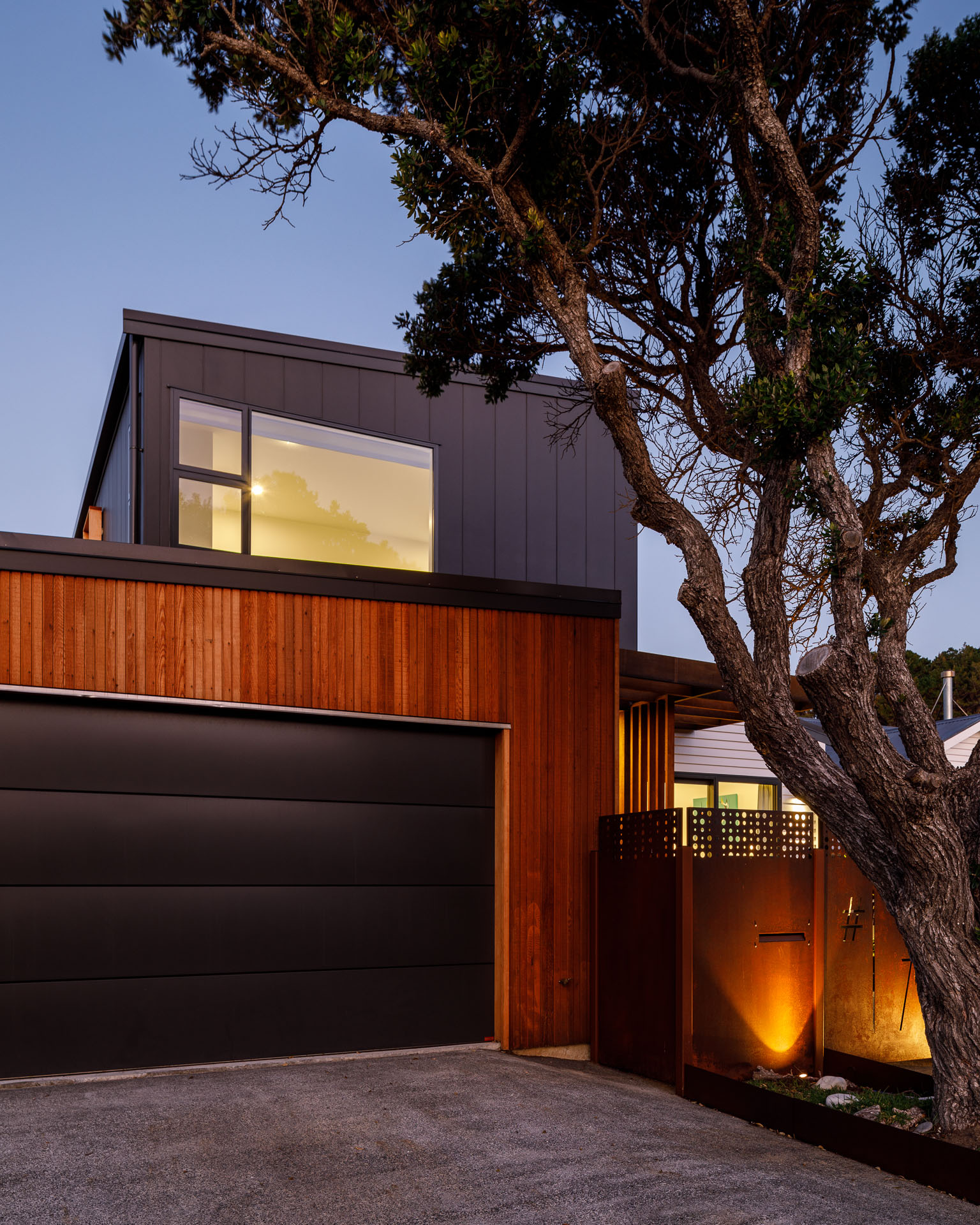 Finally, the landscaping integrates the scheme back into the suburban fabric with a textural corten fence and native coastal planting to the front verge providing a soft edge and connection to the existing Pohutukawa.