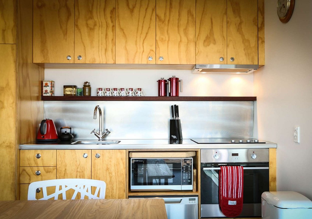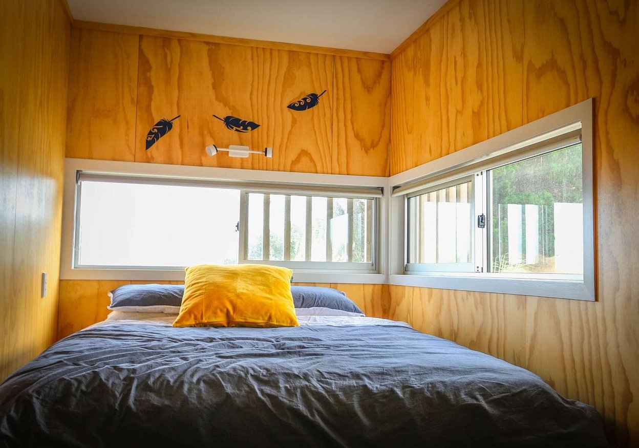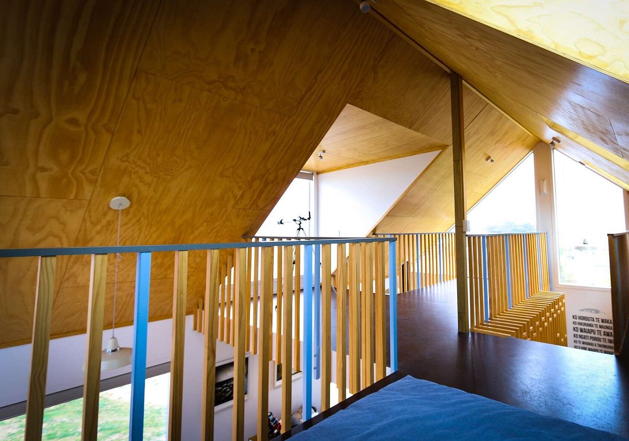 The footprint of the building is a modest 85m2 with the compact floor area offset with mezzanine levels and connected decks, while the annex building facilitates various functions allowing for a flexible use of space. The main building contains living, single bedroom, kitchen, bathroom/laundry as well as an external bathroom servicing the separate sleeping/living building. The outdoor ablutions and open plan “marae style” sleeping exploit the informal expectations of the bach typology while allowing for efficiencies in planning and services.