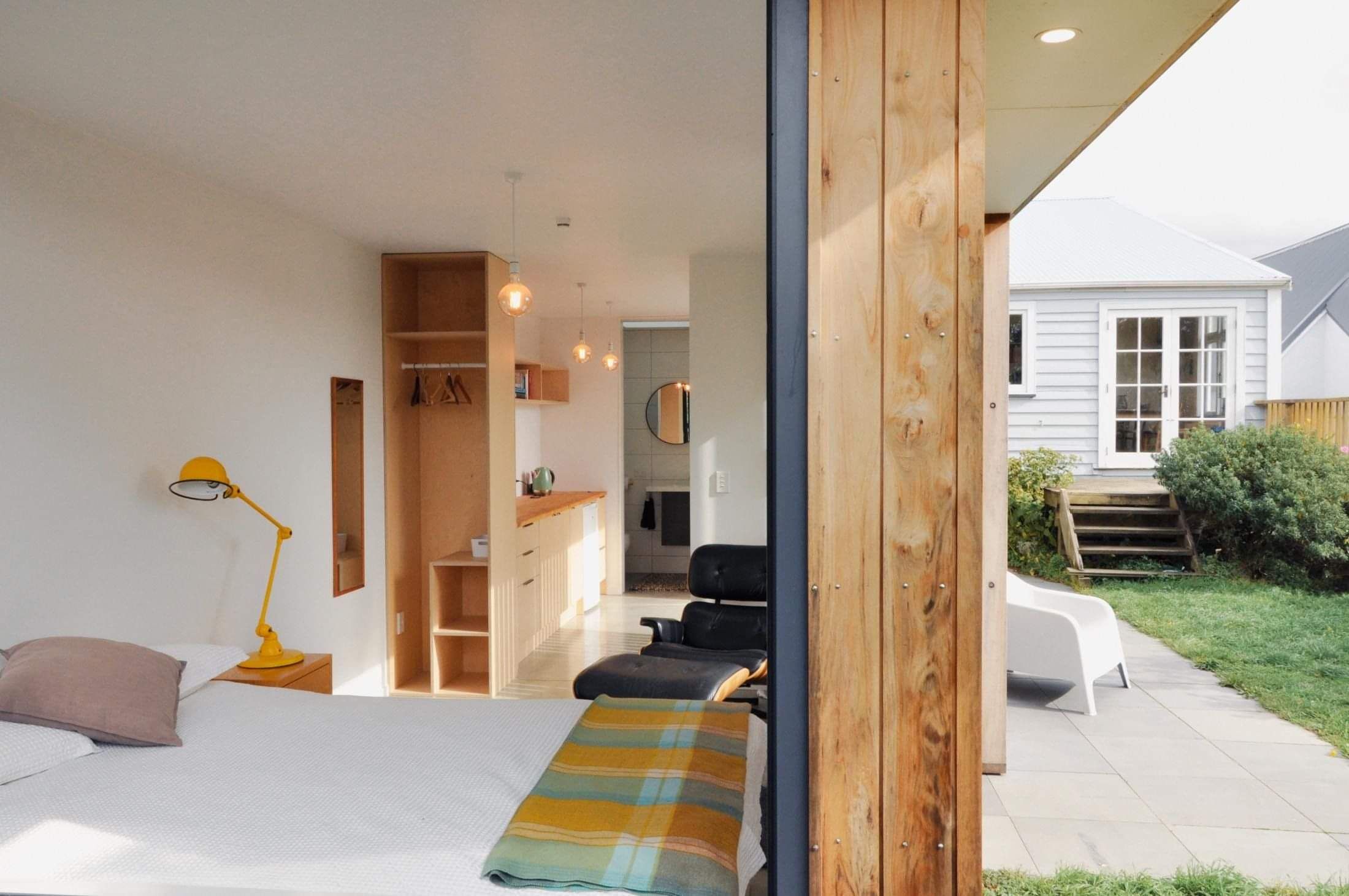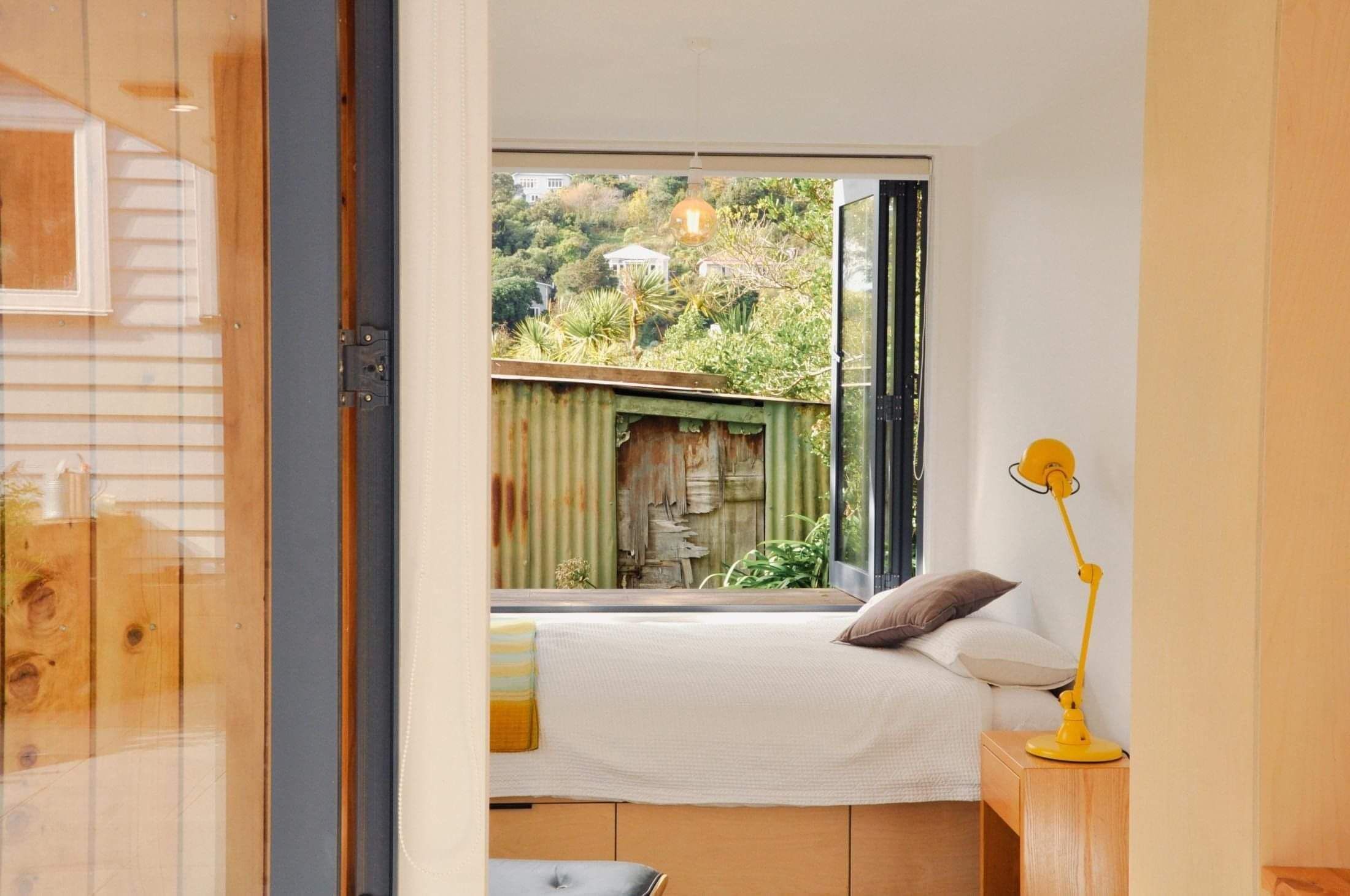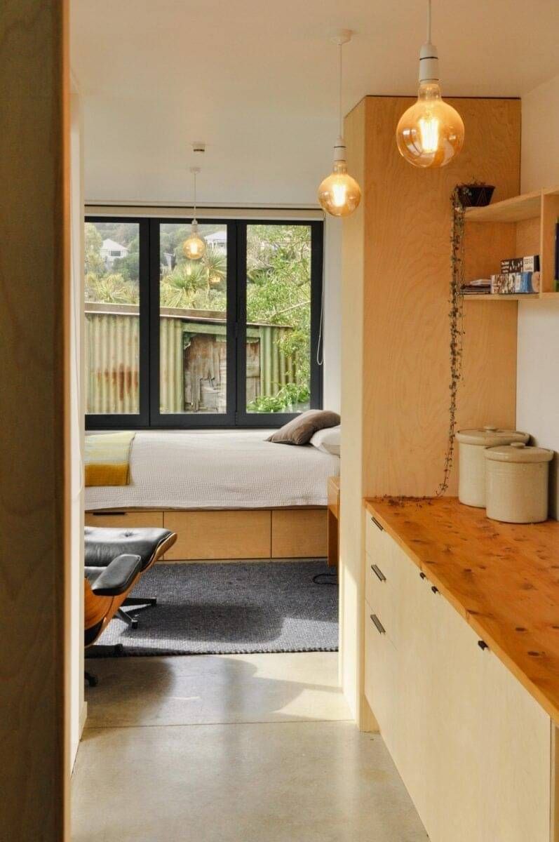 The architectural solution adopts a simple yet sophisticated approach, manifesting as an rectangular structure with a linear arrangement of spaces along a narrow footprint. Within the available margins an ensuite bathroom, queen-size bed, cosy reading nook, and tea station all seamlessly integrate to maximise utility.