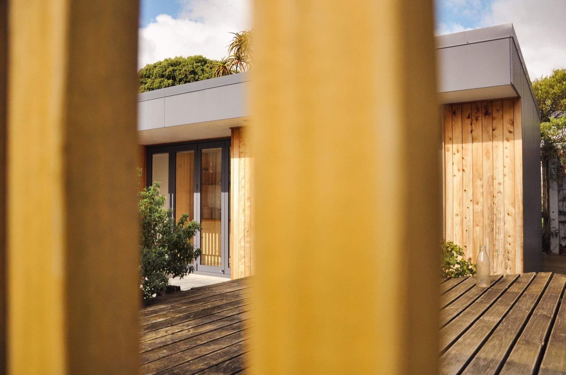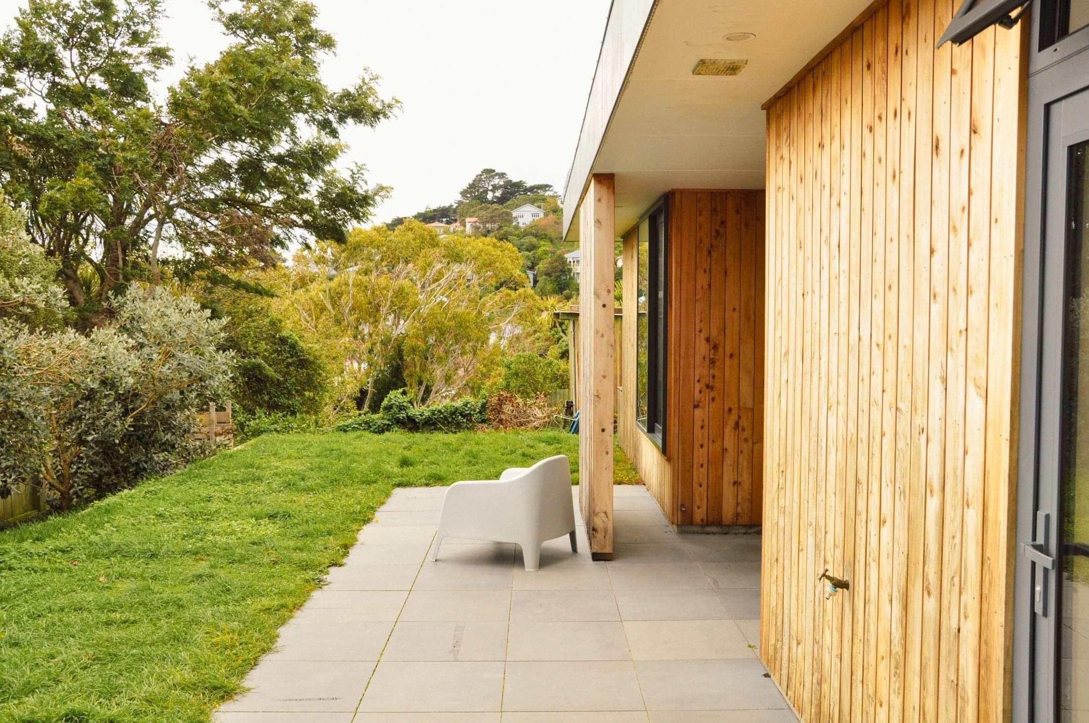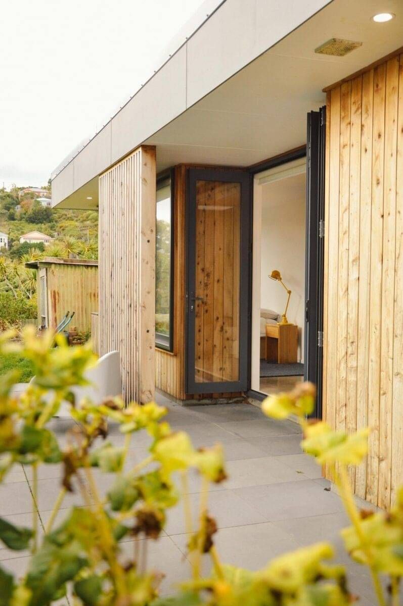 The exterior palette is understated but carefully composed. Natural macrocarpa timber is set against paint-finished exaggerated barge details. These elements not only enhance the visual appeal but also ensure durability and resilience against the elements.