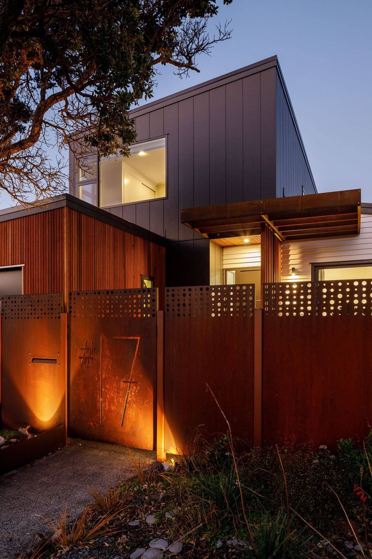 Finally, the landscaping integrates the scheme back into the suburban fabric with a textural corten fence and native coastal planting to the front verge providing a soft edge and connection to the existing Pohutukawa.