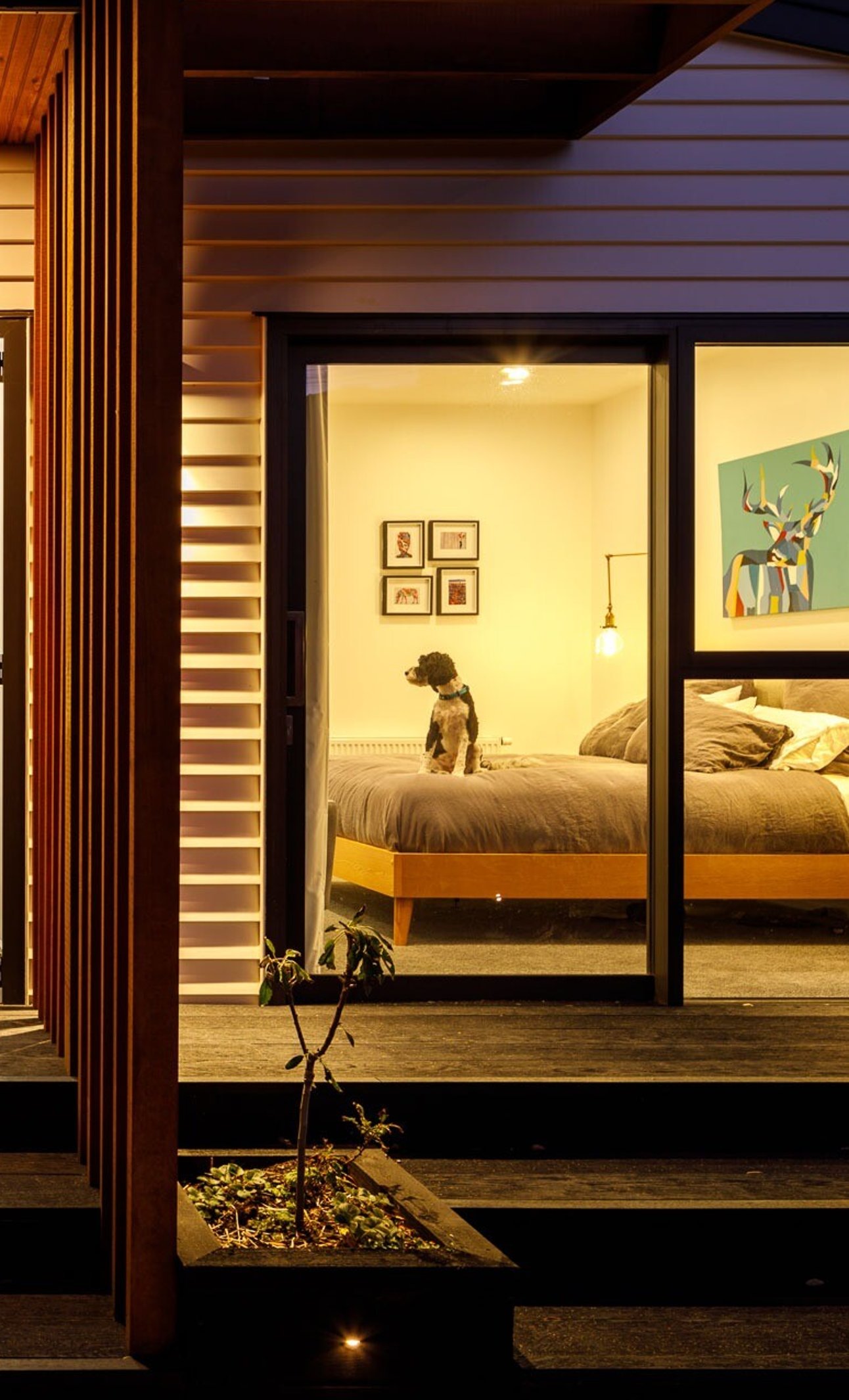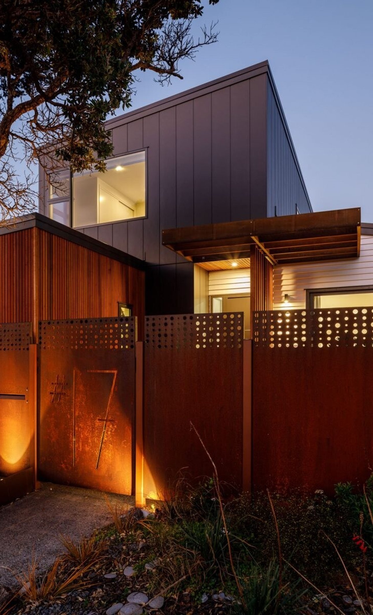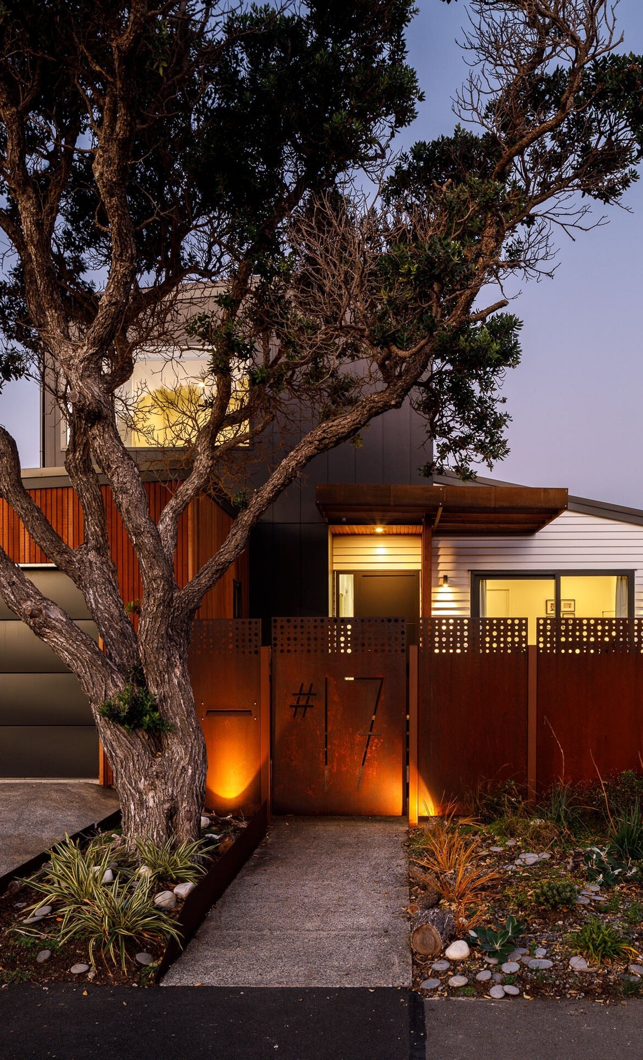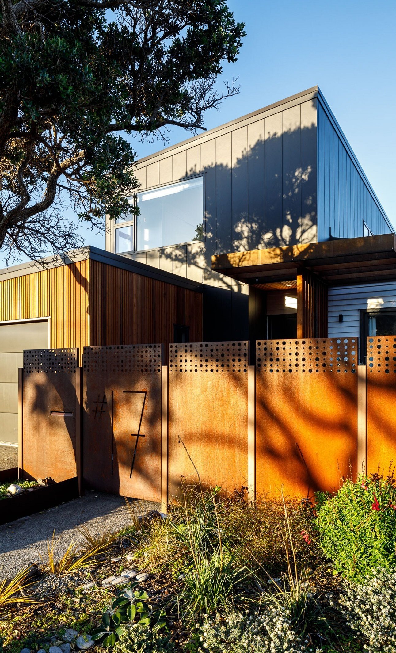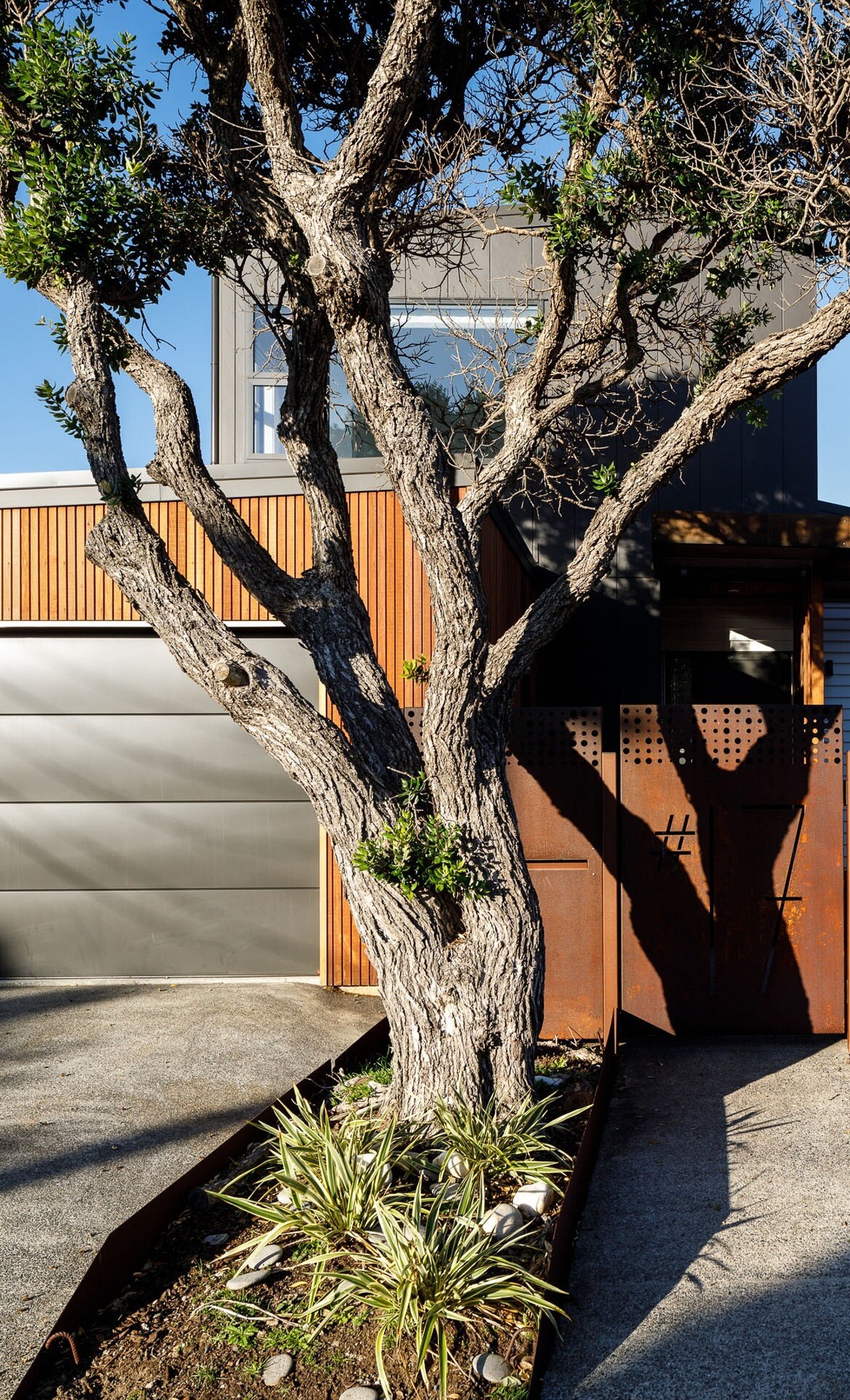 Finally, the landscaping integrates the scheme back into the suburban fabric with a textural corten fence and native coastal planting to the front verge providing a soft edge and connection to the existing Pohutukawa.